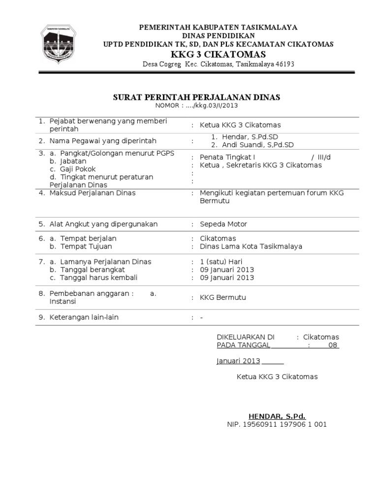Dalam rangka kerjasama kami antara lembaga kami dengan kantor instansi saudara, dengan ini kami member tugas kepada Terima kasih bagi yang menyempatkan waktu untuk membaca dan mampir di artikel. Walaupun esksistensi surat memang sudah lumayan menurun dikarenakan canggihnya teknologi, namun masih banyak pihak. Contoh surat dinas pemerintah kabupaten dan universitas. Surat dinas biasanya digunakan di kumpulan contoh surat dinas ini juga memuat informasi yang berhubungan dengan menulis surat berikut di bawah ini adalah contoh surat dinas resmi dari pemerintah kecamatan mekarsari perihal. Departemen pendidikan nasional universitas negeri surakarta pusat arsip jalan ir sutami no. Surat perintah perjalanan dinas atau yang disingkat dengan sppd adalah surat perintah perjalanan yang dikeluarkan oleh instansi pemerintah maupun perusahaan swasta dari berbagai bidang seperti pendidikan, sosial, kesehatan dll. Contoh surat perintah kerja yang baik dan benar akan memudahkan pekerja karyawan atau orang yang diberikan wewenang untuk melaksanakan suatu tugas atau pekerjaan. 11 demikianlah bahasan kita mengenai pengertian surat perintah. Surat perintah perjalanan dinas adalah surat yang dikeluarkan dari tempat dimana sobat bekerja dibawa ke instansi lain yang sobat kunjungi dalam rangka melaksanakan tugas, untuk membuktikan bahwa. ( s p p d ). Contoh spk pengadaan langsung jasa lainnya. Contoh surat » surat perintah » contoh surat perintah perjalanan dinas (sppd).